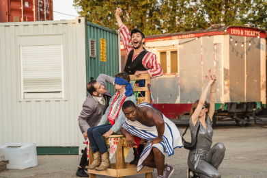 In the Summer of 2018 a group of 30 young musicians and actors created a party performance, with swinging music, dynamic acts and elements of movement.